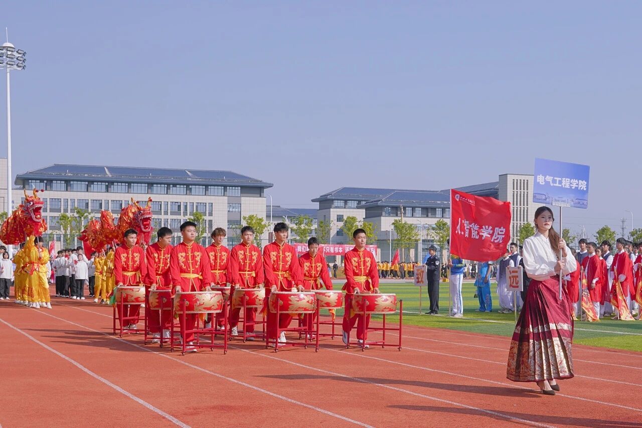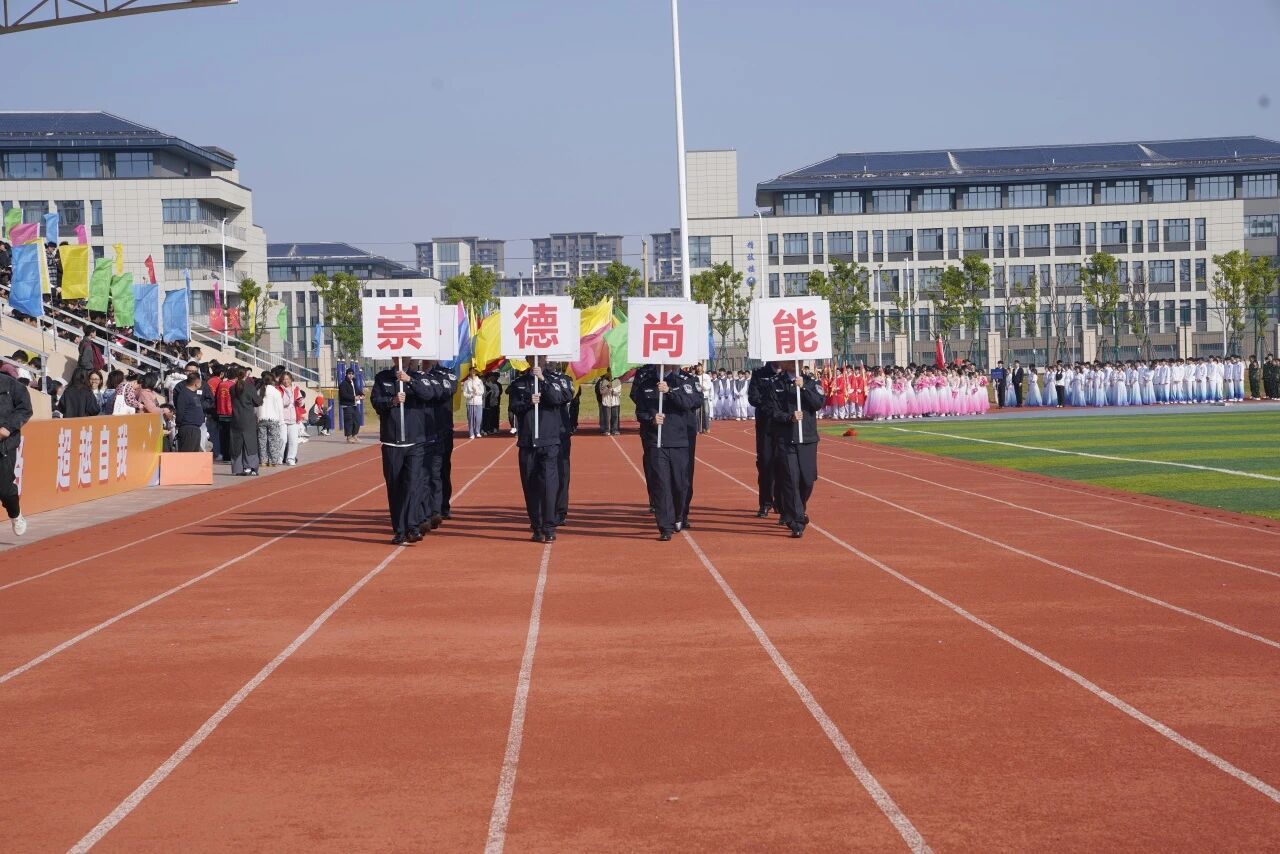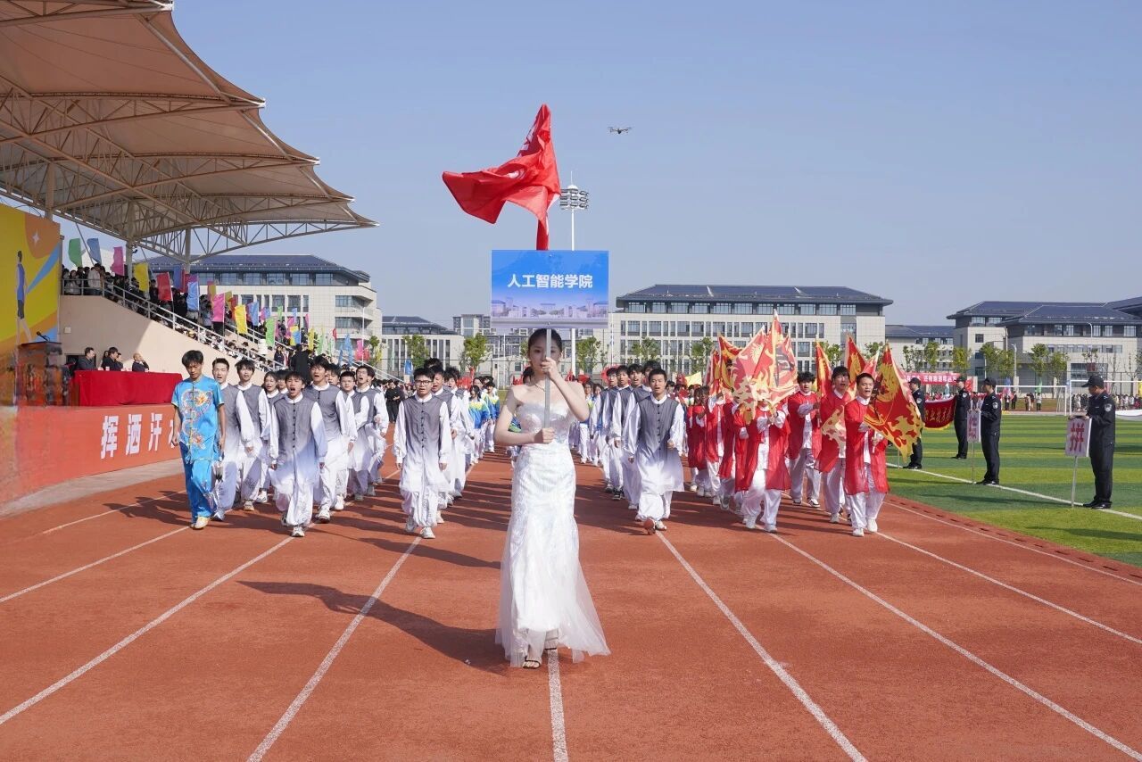 入场式中,国旗护卫队迈着铿锵有力的步伐经过主席台接受检阅。校旗、运动会会旗、校训牌以及彩旗方阵依次入场。各二级学院代表方阵精神抖擞、意气风发,他们步伐整齐、口号响亮,或挥舞彩旗,或带来精彩表演,或摆出创意队形,将青春活力与专业特色完美融合,充分展现了广大师生锐意进取、蓬勃向上的精神风貌,为秋日校园注入青春活力。